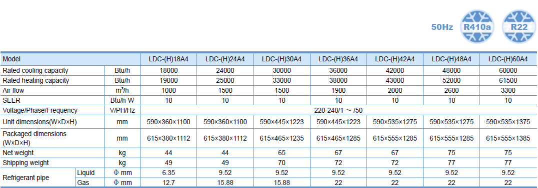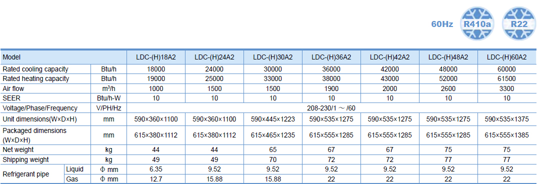 Efficiency range from 10.00 SEER & 13.00 SEER Nominal capacity from 1.5 to 5 tons